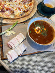 Это заведение приятно удивило. Просторное помещение, которое грамотно поделено на зоны: рядом с баром, у детской комнаты и основная зона, где находится пульт официантов. Честно говоря, мне кажется, это лучшее место в Анапе. Всё, что мы там пробовали, начиная от блюд и заканчивая обслуживанием, интерьером и даже туалетами, было просто на высшем уровне. Меню здесь огромное, глаза разбегаются. Мы долго не могли определиться, но так как на улице было холодно, решили взять что-то горячее. Заказали борщ с салом, солянку и фирменную пиццу “Сицилия”. Из напитков я выбрала сезонный ягодный чай, а сестра — чай с чабрецом. Начну с напитков. Мой ягодный чай (кажется, с клюквой, хотя точно не помню) был невероятным! Подают его не в чайнике, как обычно, а в кружке. Сначала мне это показалось немного странным, но, честно говоря, одной кружки оказалось вполне достаточно. Сестре принесли чай с чабрецом в чайнике — полноценная порция, да ещё и с милыми кружечками, которые мне захотелось потом где-нибудь купить. К чаю подавали маленькие печеньки — милая мелочь, а настроение сразу поднимает. Теперь про еду. Борщ — выше всяких похвал. Прямо как домашний, насыщенный, с идеальным сочетанием ингредиентов. К нему подают сало, нарезанное на кусочки чёрного хлеба, зелёный лук и чеснок. Это было просто идеально. Солянка тоже оказалась вкусной — без лишнего, наваристая и насыщенная. Я сама её не фанат, но сестра в восторге, так что верю ей. Пицца “Сицилия” — отдельная история. Мы взяли 30-сантиметровую( на выбор есть 4 размера), и, честно говоря, это оказалось лишним. После борща и солянки мы уже наелись, но очень хотелось попробовать. Пицца была превосходной: тонкое тесто, идеальное сочетание ветчины, салями и сливок. Вопросов к ней вообще никаких. Мы съели буквально пару кусочков, остальное нам упаковали в удобную треугольную коробочку. Можно оплачивать счёт по QR-коду прямо за столом, не дожидаясь официанта. Правда, за это взимается небольшая комиссия, поэтому я предпочитаю платить напрямую у официанта. Кстати, обслуживание здесь быстрое, так что ждать особо и не приходится. Интерьер уютный и симпатичный. Для детей есть большая игровая зона с рядом расположенными столиками — удобно для родителей. В общем, если ищете место в Анапе, где можно вкусно поесть и приятно провести время, сюда точно стоит заглянуть.