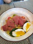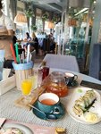 Обедали в этом кафе. Приятно поразила молниеносная скорость работы персонала. Быстро подали меню, быстро приняли заказ, быстро сервировали стол, быстро рассчитали после обеда. Но, вот такая же скорость подачи готовых блюд уже насторажила. В заказе были роллы Филадельфия, рис с креветками, салат Капрезе, лимонад манго-маракуйя, американо. Почему поразила скорость подачи готовых блюд? Это выглядело так - официант принял заказ, принёс лимонад и кофе, и сразу роллы и рис с креветками. Постойте, разве их не нужно готовить? Роллы, которые лежали по краям ряда были с заветренным, подсохшим рисом на срезе... Рис с креветками в меню был обозначен как острое блюдо, в реальности оказался пресным. Само блюдо было холодным. Ингредиенты будто отдельно друг от друга, сухие, соус не чувствуется. Салат подали последним, видимо понадобилось время для нарезки помидора и сыра, спасибо что свежий. Капрезе сложно испортить, подвёл недозревший помидор, тот, от которого язык щиплет. Лимонад малина-маракуйя неплохой. К кофе подают мини печеньку, приятно, вспомнила Италию, но кофе здесь больше не захочу.