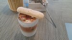 Красивое меню с фотками. Атмосферно и заманчиво, эффектные столики даже те, которые на улице. Для пиццерии и кафе цены дороговаты, т.к. центр города. Наверное тут надо брать именно пиццу и т.п., а я взяла мидии в сливочном соусе. Порция в 250 г - это 4 мидии, густой соус практически без специй и 2 куска неподсушенного хлеба, больше напоминающего батон, чем чиабатту... Есть можно, но второй раз заказывать не хочется. Латте тирамису - это кубики льда, немного напитка и одна печенька.