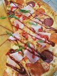 16 мая 2025 года посетили с мужем это заведение. Я местный житель, поэтому была в этой пиццерии не раз. Мне очень нравятся сырные палочки и пицца БЫЛА всегда вкусная... Палочки - тянучки порадовали, как всегда, а вот пицца.... Заказали пиццу "Много мяса" 40 см. Когда принесли, я была просто в шоке🤭😬. Мне показалось, что в нашу пиццу забыли положить начинку и сыр😄. Заказывая пиццу с названием "Много мяса", я думала, что там будет много мяса под сыром... Смотря на круглый корж теста, который нам принесли, супруг предположил, что создатели этого шедевра предполагали много видов мяса... Там действительно было на каждом кусочке пиццы по три кусочка чего-то разного цвета... И всё... В итоге, мы съели по кусочку теста и попросили завернуть нам его с собой, чтобы дома добавить много мяса и сыр... Осадочек остался.... За палочки сырные спасибо. Они вкусные👍. Но, если захочется снова пиццы, выберу теперь другую пиццерию....