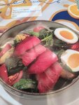 Доставка 11.07.25 Курьер -5 Упаковка-5 Еда - 3 Всё очень хорошо упаковано, видно что вложено не мало средств в брединг...испытала ли я удовольствие?! - нет. За такой ценник, ожидания не подтвердились (ролл не держал форму, что вообще странно, явная ошибка в приготовлении риса). Очень хочется вскрывая красивую упаковку, также насладиться и вкусной едой! Вообщем "ничего не поженилось" в этот раз. Успехов!