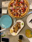 Оооо...Все прекрасно! Пришли поздно. Полная посадка. И несмотря на это очень быстро получили заказ! Великолепный салат из вяленой свеклы. Пицца вкусная! Я не любитель креветок, но они были вкусные! Горячее - вкусное! Порции большие! Приятный бонус в честь Дня рождения- пицца - сердечко)))) спасибо!!!