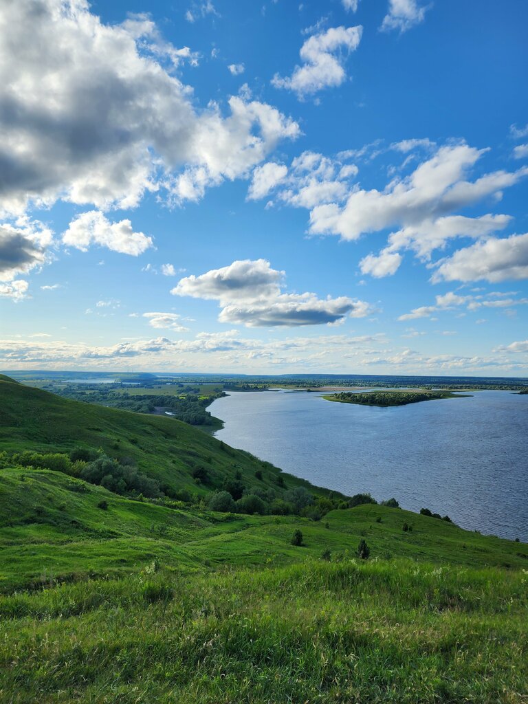 Посетили недавно смотровую площадку с потрясающим видом на Волгу и были в полном восторге! **Панорамные виды** здесь действительно захватывают дух – бескрайние просторы реки, живописные острова и величественные поля открываются как на ладони. Особенно впечатляет возможность наблюдать за движением судов по реке. **Качели** на площадке – это отдельная история. Современная конструкция позволяют по-новому взглянуть на окрестности. Качаясь, можно наслаждаться потрясающими видами и делать эффектные фото. **Инфраструктура** площадки радует своим разнообразием: **Чистота и комфорт** поддерживаются на достойном уровне, хотя есть куда расти в плане благоустройства некоторых зон. **Лучшее время** для посещения – вечер, когда можно застать потрясающий закат над рекой. Также прекрасно подходит для семейных прогулок и фотосессий. Однозначно рекомендую к посещению всем, кто ценит красивые виды и необычные локации для отдыха. Это место способно подарить незабываемые впечатления и прекрасные воспоминания!