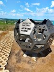 Люди, как обычно, засвинячили место. Из многогранника памятника,создали себе урну и накидали туда бутылок. Само место очень красивое. Вид на Волгу потрясающий. И так приятно покачаться на монументальных качелях с таким видом. Рядом строится база отдыха и кафе. Пока они не работают, но на будущий год, надеемся, откроются. Один из подъездов асфальтирован и вполне удобен.