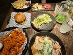 Были вечером в субботу с мужем около 19:30, поход заранее не планировали и как-то спонтанно решили зайти попробовать. Посадка была очень плотная, пустых столиков не было почти вообще, на входе стояли толпы людей которым не находилось места, но нас встретила девушка и сказала что столик на двоих у них найдется. Как только мы сели нам сразу дали меню, а так же на столе стояла бесплатная вода, что очень порадовало. Выбор блюд в меню довольно таки широкий, найдется что-то на любой вкус и взрослым и детям. Я не люблю мясные блюда, выбрала пасту в сливочном соусе, порцию батата и салат цезарь. Муж решил впервые попробовать тар-тар, взял еще бургер и картошку фри. Заказ у нас приняли быстро, внимательно, услышав пожелания. Готовили еду порядка 10-15 минут, что в принципе очень быстро при посадке более 250 человек в зале. Мои блюда мне понравились, но не могу сказать что они были какие-то особенные. Салат вкусный, свежий, соус не сильно насыщенный. Паста хорошо сварена, соуса достаточно, но не понравилась сама подача. Вся смесь лапши замотана в некий «кокон» и непонятно как ее лучше есть, было сложно намотать на вилку, поэтому пришлось сначала размотать все. Батат хорошо пожарен, НО как и картофель фри совершенно не соленый, а соль которая стоит на столиках очень крупная и совершенно не оседала на кусочках. Снеки кстати подаются с соусами, к картошке был кетчуп, а к батату блю-чиз. По заключению мужа тар-тар ему понравился, хоть и сравнивать было не с чем, но сказал что будет брать еще. Бургер тоже был хорош, мясо сказал очень качественное. К сожалению название бургера точно не помню, но было что-то из алгокольного мира (возможно Джек-дениелс) В целом впечатление очень хорошее осталось, несмотря на забитый зал и вечернее время все сотрудники бегают и хорошо выполняют свою работу, будем приходить еще.