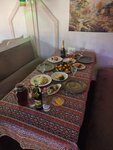 Божественно вкусно, гостеприимно, по домашнему уютно. Красиво. очень быстрое обслуживание, огромные порции. Средний чек 2000, но наесться от пуза. Меню разнообразно, помимо национальной кухни есть европейские блюда. Салат морская экзотика- восторг, рекомендую всем попробовать!! по вечерам живая музыка, есть столы на улице, под крышей, как бы внутренний дворик, очень комфортно