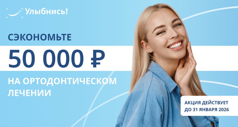 Ваша идеальная улыбка стала ближе! Скидка 50 000 ₽ на установку брекетов в "Улыбнись"! Мечтаете о ровных зубах и уверенной улыбке? Сейчас...