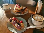 Прекрасное место, где можно попить кофе с чудесной красивой, свежей выпечкой. Чистота идеальная. Девушки продавцы доброжелательные, быстро обслуживают аккуратно.