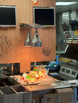 ресторан располагается на втором этаже здания (отсутствует выдача авто, но есть кафе). зал очень просторный, красивый, есть столики у широких окон с видом на чонгарский бульвар и проезжающие по нему автомобили. есть посадочные места с диванами или высокими пуфиками, есть столы на одного гостя или на целую компанию. фоновая музыка не шумная, поэтому не мешает наслаждаться едой. заказали 3 больших комбо с сезонными стаканами — весь заказ был собран в течение 10-15 минут. понравилось то, что картошка фри оказалась соленой, как я и люблю (однако для кого-то она вполне может показаться пересоленной). огорчило то, что напиток "добрый кола" отказались заменить на "липтон лимон".