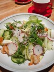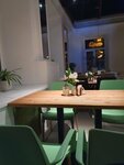 Оценила на 5 звезд, потому что нравится это место! Не всё идеально, есть над чем работать)) Меню нравится, но не всё) Кофе вкусный!!! Особенно понравились кальмары с цуккини и рукколой! Завтраки нравятся! Драники с лососем и яйцом пашот нравится. Цезарь с курицей, Деревенский вайб(поджаренный бекон с яйцом пашот на картофельной вафле с соусом и красным луком - очень вкусно!!! Очень нравится интерьер, по-хорошему европейский, простой, но со вкусом! Удобные стулья(не все опробованы), диванчики, нравится вид из окон на центральную улицу и реку Трубеж. Обслуживание - по-разному… иногда прекрасно, иногда томно и не слишком любезно)) От всей души желаю заведению процветания и быть лучшим!❤️