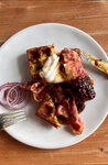 Хашбрауны с семгой и яйцом пашот