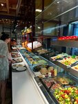 Шикарная столовая с очень вкусной едой. Очень удобно, когда не много времени. Всегда всё свежее и цена 149₽ за 100 г довольно демократичная. В наличии разнообразные закуски, несколько видов супов, горячее, гарнира, десерты, есть даже роллы. После 20:00 действует скидка 30%, конечно, к этому времени уже не так много блюд в наличии, но выбрать можно. В зале есть микроволновка, а в зале и на улице столики с удобными диванчиками, также 2 типа веранды - открытая и закрытая. Мы остались довольны! Спасибо 🫶