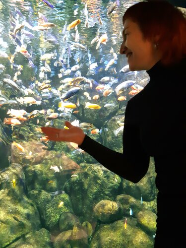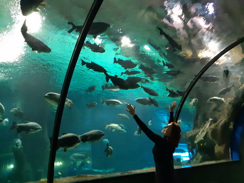 С удовольствием "окунулась" в сказочную атмосферу...)) Полумрак..аквариумы с подсветкой..разнообразие обитателей подводного мира...приятная музыка...)) Что может быть лучше в холодный ноябрьский день? Мне нравится наблюдать за неспешным движением рыб...рассматривать причудливую растительность аквариумов...погрузиться в созерцание и ни о чём не думать в этот момент... Получила большое удовольствие от сегодняшнего посещения ...)))
