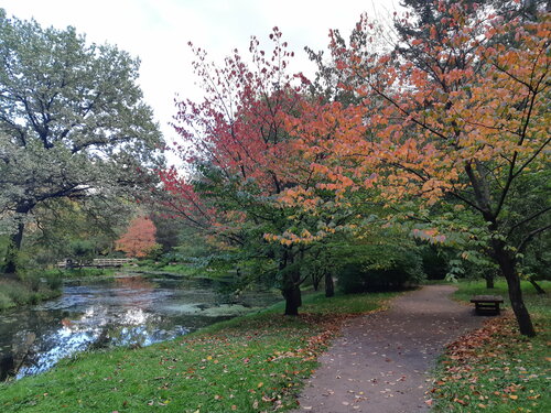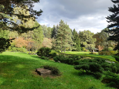 Чудесно...лесной массив в центре Москвы... При входе сразу встречает живописнейший пруд с утками,окружённый старыми ивами...По главной аллее можно неспеша пройтись,любуясь на вековые дубы...Будут встречаться водоёмы...множество дорожек,каждая из которых ведёт к какой- нибудь тематическрй локации .. Мы шли целенаправленно к Японскому саду...хотелось полюбоваться на осеннюю палитру..внести умиротворение в душу... Красиво и тихо... Сам ботанический сад огромен,поэтому возвращаться сюда и получать удовольствие от природы,нужно не один раз..