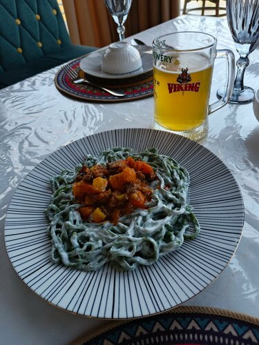 Плов вкусный, порции большие, места удобные, приносят быстро, чай не берите(просто пакетик в чайник заливают кипятком),цена невысокая, разок сходить можно