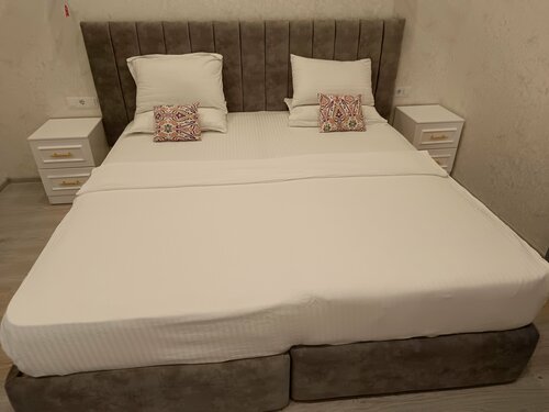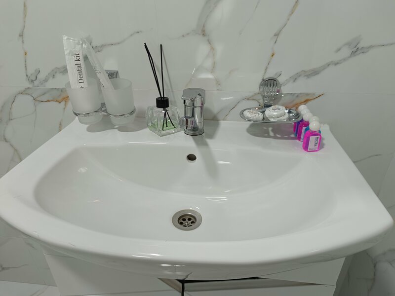 Отличное расположение , просторные номера, есть чайник, чайные пакетики 2 водички, пополняют каждый день, белье чистое, вкусный завтрак на террасе, кофе приготовят по запросу, до крепости минут 5-7, так же в 2 минутах через дорогу замечательный Летний дворец
