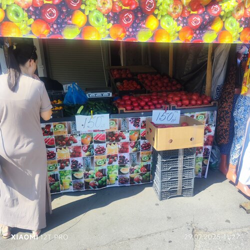 Очень грязные туалеты, как не стыдно администрации. Ну а сам рынок на троечку, за порядком не следят, товар только наличкой или переводом, не удобно. Цены на продукты как и везде, может немного ниже, продуктов много, выбор есть. Плюс: большой выбор, цены демократичные. Минус: отвратительные туалеты, ну и грязноват сам рынок.