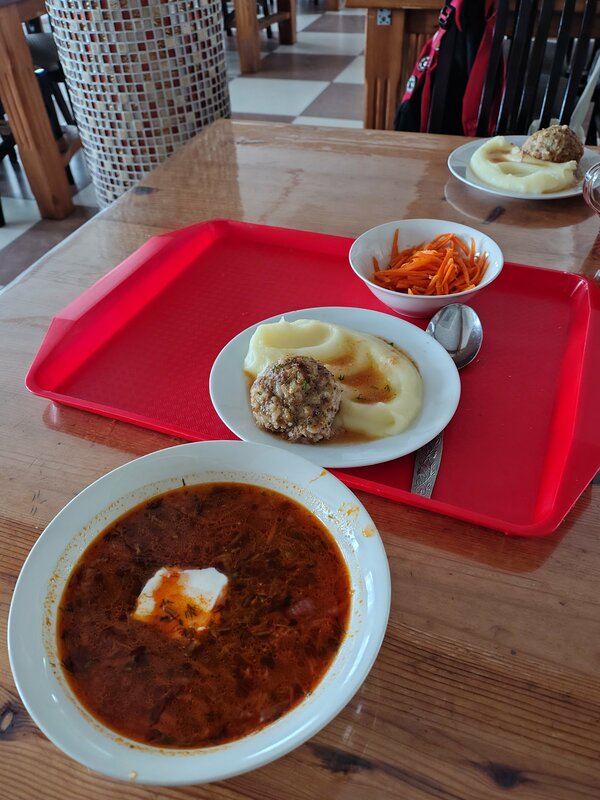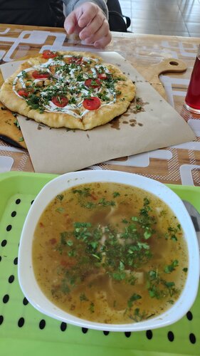 Очень вкусно, приветливый персонал, доступные цены! Большая порция свежей лапши с курицей, вкусная лепешка с сыром, вкусный компот! Рекомендую 👍🏻 расположен у дороги, поэтому удобно заезжать по пути