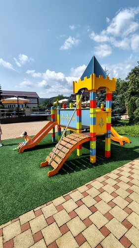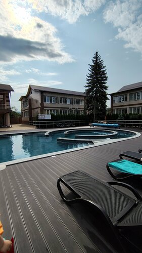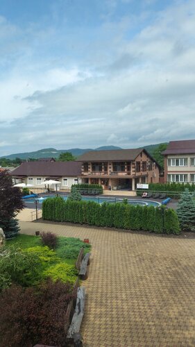 Прекрасное место для семейного отдыха. Большой теплый бассейн с подогревом, беседки с мангалами, столовая с сытными завтраками, которые включены в стоимость (обеды - 550₽/чел, оплата на ресепшн), зелёная территория, есть парковка, кафе на территории (вкусная пицца, оплата наличными), чистый номер, столы для настольного тенниса, мини- детская площадка для малышей. Из минусов - нет полотенц для бассейна, тесная душевая кабина, всего лишь 2 сушилки на этаже, игровая комната не работала.