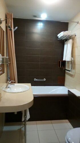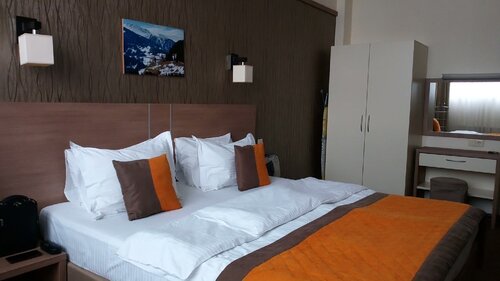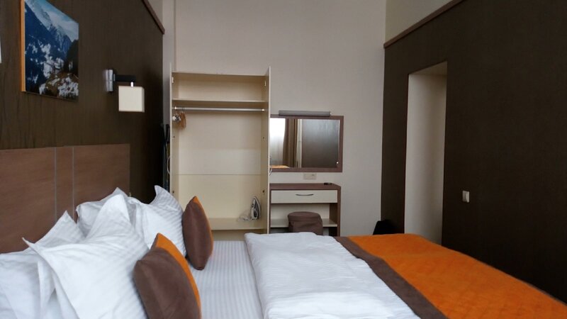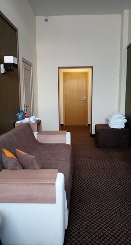Отдыхали здесь в сентябре. Нас было трое, снимали люкс: две комнаты - одна комната с двухспальной кроватью (можно разделить), две прикроватные тумбочки, шкаф, туалетный столик с зеркалом, шкаф; вторая комната - журнальный столик, телевизор, рабочий стол (в шкафчике стола - холодильник), мягкие стулья, диван (раскладывается и может вместить 2 человека), раскладушка (на фото выглядит как пуфик), тумбочка; ванная с душем (не душевая кабинка), туалет с ванной (не раздельный), раковина; в прихожей - шкаф, вешалки с полочками, зеркало. В стоимость входило: - проживание; - обслуживание (в том числе, уборка номера); - завтрак ("шведский стол"); - Wi-Fi, TV; - постельное белье, полотенца, халаты, тапочки, посуда; - холодильник (был в номере); - вода (без газа, в бутылке); - чай, кофе, сахар; - утюг, гладильная доска, чайник, фен (всё было в номере); - тряпки для чистки обуви; - зубные щётки с пастой, бритвенный станок со средством для бритья, ватные диски с ватными палочками и пилочкой для ногтей, иголка с ниткой, шапочка для душа (всё это на каждого проживающего); - шампунь, гель для душа, мыло (всё это есть в номере); - есть кондиционер в каждой комнате; - есть бесплатная парковка. А вот микроволновка в номере была бы не лишней, но её там, к сожалению, нет. В номер дополнительно можно поселить ещё одного человека (за отдельную плату, естественно). Все дополнительные услуги, что указаны на сайте, есть. Также дополнительно есть обед и ужин (тоже за отдельную плату). В целом, проживание в отеле понравилось, приемлемая цена. Обслуживание хорошее, администрация отзывчивая, еда вкусная, чистота номеров - на "4 -" (на подоконнике был мусор, на задней стенке кровати - пыль, ковёр пылесосили не каждый день. Но туалет/ванна убирались ежедневно, запасы всех атрибутов (чай, кофе, вода, зубные щётки с пастой, бритвенные принадлежности и т.д.) - обновлялись ежедневно). В нашем номере была слегка сломана дверца шкафчика, где стоит холодильник. Нам это особо не мешало, администратору сообщили, так что, возможно, его уже починили. В номере также есть шкафы с плечиками для разных типов одежды, есть вешалки. Также есть сейф и фонарик. Сами номера закрываются на магнитный ключ. Хоть минусы и есть, но их легко исправить. В остальном же - всё в плюсе. Поэтому, если вам нужно где-то остановиться отдохнуть или ещё по какой-то причине, рекомендую обратиться именно в этот отель.