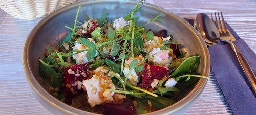 Отвратительное место: не вкусно, дорого, обслуживание никакое. Официант не знает ни состав блюд, ни меню в целом. Заказали лимонад, принесли не тот, заказали тёплый салат- принесли с верёвкой какой то, заказали форель с картошкой- картошка еле тёплая, форель даже не разогревать изначально. Заведение находится практически на центральной улице г.Сортавала, но народу в нём не было- есть над чем подумать.