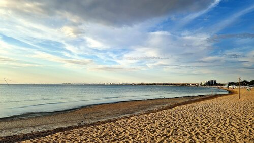 Отличный песчаный пляж с пологим берегом и ласкающими пятки волнами. Очень приятно вечером прогуливаться босиком по песку, когда твои ноги омывают тёплые волны анапской бухты.