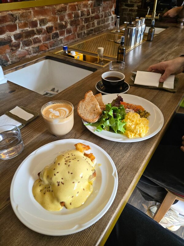 Очень стильно и вкусно. Брала бенедикт с гуакамоле и креветками, невероятно нежное и сбалансированное во вкусе блюдо. Большой завтрак с лососем действительно большой и сытный. Сюда хочется возвращаться
