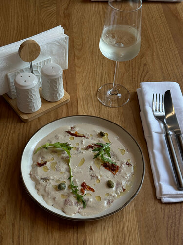 Потрясающее, светлое и очень эстетичное место! Хотелось попробовать много всего, но размер желудка вместил только вителло тоннато и поке с тунцом. Кухня - восторг, не хватило только десерта, но пообещали что скоро появится, персонал - милашки, интерьер - разбил мое эстетичное сердечко, очень свежо и приятно. Цены, кстати, тоже очень доступные, а еще в честь открытия - угостили игристым 💔🥹
