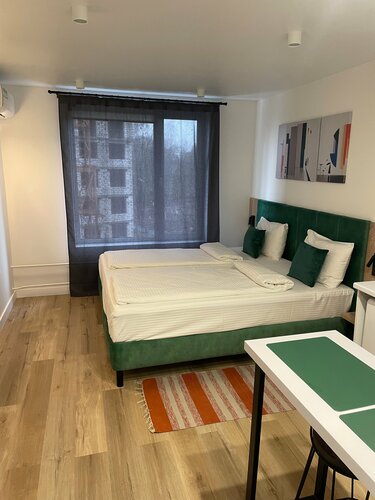 Смоленску, конечно, нужно больше объектов такого плана. По соотношению цена-качество, пожалуй, лучшее предложение в городе. Приятные аккуратные аппарты, места хватит двоим. Есть все необходимое, все новое, разве что телевизор пока не настроен: висит, но приложения я скачивала сама, это быстро. Меня лично вид на стройку и кладбище не смущает, возможно, кому-то это важно. В здании бывают шумные работы, но только днем. Буду в Смоленске-рассмотрю этот вариант как приоритетный. Вспомнила! Шторы сильно пропускают свет, запаситесь маской. И тапочками, если надо. Но можно и на ресепшене за 150 руб купить пару. В принципе, за эти деньги тапочек быть и не должно.