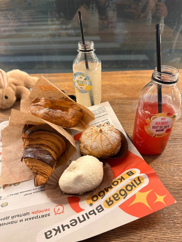 Недалеко от нашего отеля расположилась замечательная пекарня под названием "Люди Любят Хлеб". Мы решили заглянуть туда и не пожалели! Выпечка оказалась просто великолепной — свежая и очень вкусная. Каждый вечер в пекарне проходят счастливые часы, когда можно попробовать различные угощения по специальным ценам. Однако, к сожалению, не могу не отметить, что столы в пекарне были довольно грязными. Это немного испортило общее впечатление. Надеюсь, что владельцы обратят на это внимание, ведь место действительно заслуживает лучшего!