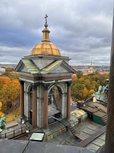 Поднимаясь на колонаду Исаакиевского собора, мы были полны ожиданий. И, к счастью, погода нас не подвела - насладиться великолепными видами. С высоты открывался захватывающий панорамный вид на город, его улицы и реки, которые словно оживали под нашими ногами. Каждый шаг по лестнице приближал нас к этому уникальному опыту, и, достигнув вершины, мы были поражены красотой Петербурга. Это место однозначно стоит посетить — здесь можно не только насладиться архитектурным великолепием собора, но и получить незабываемые впечатления от окружающих пейзажей.