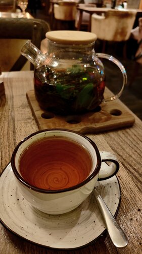 🙂🗣 Так, ну что, мы снова в этом грузинском ресторане. 🧐🗣 Когда были впервые, пили чай с наполеоном - истинно грузинская кухня :) 🙂🗣 Хинкали заказывай первым делом, а потом уже все остальное, а то Иван опять ругаться будет. 🧐🗣 Да не вопрос! Чувствую, сегодня будет много вкусных фоток. 🕟 Через какое-то время 🙂🗣 Лаваш потрясающий! 🤔🗣 (С грузинским акцентом) Эта нэ лаваш. Эта шотис пури. Запамни раз ы на всагда. Фкусно йешь. 🙂🗣 Почему у меня в голове образ грузина связан с усами и кепкой? 🧐🗣 Хех, думаю, это отголоски советского кино. В следующем году разберемся прямо на месте, на живых, так сказать, примерах. Что дальше у нас по плану? 🙂🗣 Театр драматической клоунады. -------------- Уютная, по-домашнему тёплая атмосфера, где чувствуешь себя как в гостях у хороших друзей. Играет живая музыка, а в меню - столько вкусных вариантов, что хочется попробовать абсолютно всё! Зашёл на чай, а ушёл с твёрдым намерением вернуться на полноценный ужин.