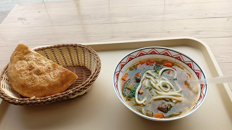 Если хочется относительно недорого и без особых претензий поесть, тогда можно зайти сюда! Относительно немáленькая тарелка лагмана и половинка лепёшки (за всё 380 рублей) на достаточно продолжительное время утолили мой голод 18.05.2025. Есть выбор: и салаты, и плов и харчо и тд.