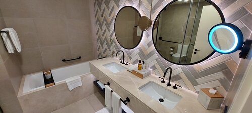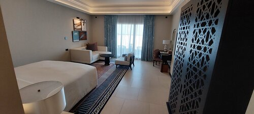 Впервые приехали в ОАЭ, смотрели много отзывов к разным отелям, и остановили свой выбор на этом. Ехали в межсезонье - с середины по конец сентября. На ресепшен иногда работает Наталья, которая говорит по-русски с легким прибалтийским или чешским акцентом, Наталья крайне любезна, отдельное ей спасибо за оперативную помощь в решении разных мелких вопросов. Первое же впечатление оправдало ожидание - заселили нас срезу, хотя было около 11 дня, во время нашего заезда гостей в отеле было мало - не сезон еще. Номер огромный, все удобства есть и самые современные. Порадовало наличие кофемашины Nespresso, к которой привыкли дома, только капсулы не Nespresso а Lavazza, но не хуже (минус сэлзам Nespresso, не смогли конкурировать с Lavazza). Очень порадовал вид из окна garden view - по сути видна бухта и сад и релакс бассейн. В номере есть все для туриста без чемодана - и гигиенические наборы и халаты с тапочками. Особенно понравилась удобнейшая кровать. Уборка ежедневная. Рестораны (Waka и французский Reunion) можно посещать на обед и ужин. На гостя, в зависимости от пакета, уже оплачено 200 дирхам за посещение, остальное надо доплатить. Основной ресторан: завтрак шведский стол, меню разнообразное, и омлеты, и блинчики с венскими вафлями, и сыры и каши, и выпечка. Обед и ужин - по меню. Заказывали обычно набор из супа, холодной закуски, горячего и десерта, как позже узнали, по согласованию с менеджером официант может принести еще и горячую закуску, например креветки в кляре))) Минус основного ресторана в однообразном и не обновляющемся меню обедов и ужинов - всегда один и тот же перечень блюд. Полинезийский ресторан Waka - это очень вкусно и великолепное обслуживание! Пляж: Огромная по ширине, ничем не занятая береговая линия (метров 400 от территории до моря). У моря два ряда зонтиков с парой шезлонгов. Расстояние между зонтиками приличное, метров пять. В общей сложности насчитали 28 шезлонгов. Если приходите рано утром, то на шезлонгах уже лежат полотенца. Никаких залогов за полотенца не требуется. На пляже и у бассейнов есть стойки с полотенцами и дозаторами с кремами для загара 50 и 30, а также после загара. Там же можно взять питьевую воду. По сути, исходя из количества номеров, шезлонгов мало. И к концу первой недели нашего пребывания, когда массово приехали местные шезлонгов, конечно же, не хватило, гости стелили на песок полотенца. К середине дня привезли еще шезлонги и зонты, организовав третий ряд. Но почему бы это не сделать заранее!? Песок на пляже перемешан с ракушками, ходить надо осторожною Также много мусора. Два раза за две недели проезжал трактор, просеивал песок, но только по одной полосе, а не по всей территории огромного пляже, да и там, где проехал не сильно изменилось. Инфраструктура: Нет, и это отлично, никакой грохочущей музыки, ни каких толп визжащих детей и аниматоров орущих в микрофоны. Все тихо, спокойно, расслабляюще. Вдоль дорожек стоят динамики с медитативной музыкой, которую включают в СПА, но динамики грамотно направлены вверх, и отойдя от них метров на 10 музыки уже не слышно. СПА: Были дважды в сауне, не понравилось. Сауны, в силу традиций, раздельные - мужская и женская, т.е. семьей вместе не посидеть. Steam не работала ни разу, ни в мужском ни в женском отделении. Сама сауна без каменки, но ковшик имеется))))). И ни одного человека рядом нет - может это и плюс. Процедуры в СПА заоблач