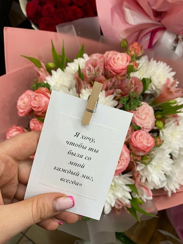 Всё очень понравилось! Заказал жене 5 букетов разных! Все цветы свежие, красивые! Договорился о доставке каждые 2 часа, сделали все на высшем уровне! Спасибо флористу и спачито службе доставки! Мне все понравилось, девочка флорист помогла еще и с открытками с поздравлениями! Спасибо огромное вам❤️
