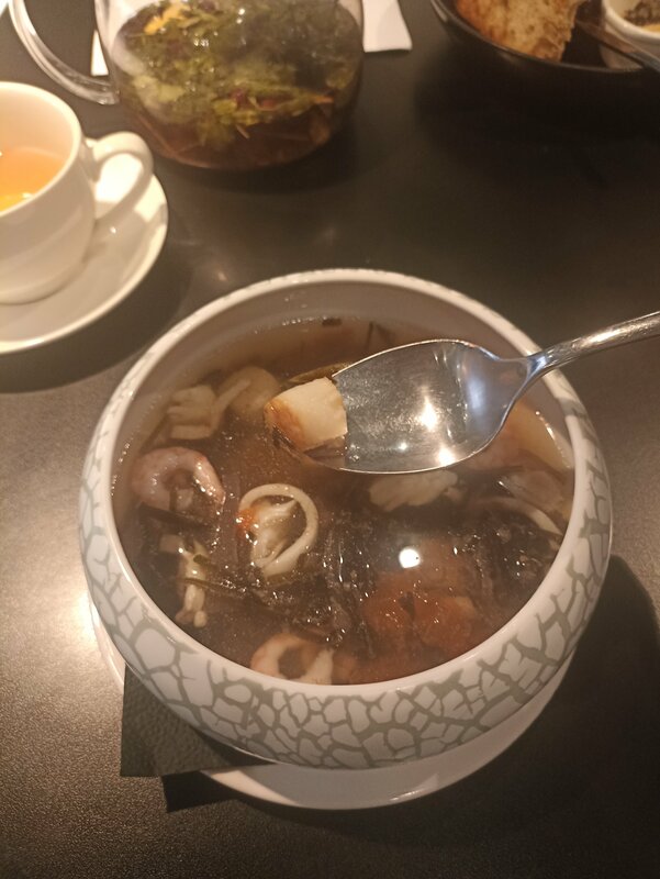 Большое меню, широкий выбор позиций, есть детское меню, которое наш ребенок проигнорировал, потому что утка по-шанхайски вкуснее куриного супа 😁 также для детей есть раскраски и карандашики. Очень понравилось, что есть несколько блюд со свежим корнем лотоса, это круто. Есть бутылочное китайское пиво. Пришли в воскресенье ближе к вечеру, занято было несколько столов, так что, думаю, свободный столик можно найти всегда. Порции, как всегда в китайском ресторане, большие, так что нам на троих хватило одного салата из корня лотоса, одной утки и одной рульки + 3 порции риса. И лично мне казалось, что еда никогда не закончится 😅 В итоге, на 3 взрослых и 1 ребенка потратили 4,5 тысячи за салат, горячее, детский суп, чайник зеленого чая и бутылку пива Циндао. Вполне бюджетно. Обслуживание тоже хорошее, никаких нареканий. Будем знать, что у нас тут недалеко такой хороший ресторанчик. С удовольствием зайдем еще!