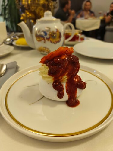 Неудивительно, что все наши местные гиды рекомендовали именно ресторан Ланин. Здесь всё идеально: хороший интерьер, прекрасная еда, отличное обслуживание. Нам хотелось попробовать чего-то исконно русского, каких-то местных рецептов, и в Ланине мы нашли именно то, что искали. Никаких странных иностранных ингредиентов, классическая русская кухня очень высокого уровня. Винегрет с опятами становится интереснее, говяжий язык и телячьи щёчки тают во рту. С Павловой вообще получилось забавно: взяли одну на двоих на пробу, в итоге заказали еще две. Наш официант Никита чутко следил, чтобы за нашим столом все было хорошо. Прекрасно знает меню, обязательно подскажет и поможет выбрать. Особенно это ценно, когда за столом аллергик. Остались ОЧЕНЬ ДОВОЛЬНЫ. Ланин вошел в наш топ-10 ресторанов по эту сторону Волги (за Волгу мы еще не выбирались 🤣). Теперь снова тянет в Смоленск, чтобы пообедать именно здесь.