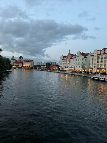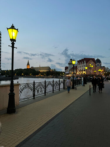 Сердце Калининграда,множество красивых кафе на набережной,уличные музыканты,есть разводной мост,но его к сожалению сейчас не разводят,обязательно попробуйте сырные крендели,они очень вкусные,дедушку Карла как раз найдете на Медовом мосту,который связывает остров Канта с Октябрьским островом(Рыбной деревней)