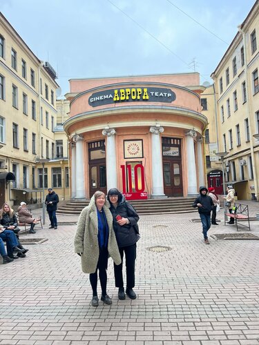 В конце декабря 1913 года открылся один из первых роскошных кинотеатров в столице —«Пикадилли». «Большой театр световых картин»— так он именовался в афишах. Представляете, как это было? Дамы и господа прогуливались по фойе, сидели за столиками… Играл маленький оркестр… Начинался сеанс, крутились ленты немого кино, играл тапёр (а часто и оркестр!) В тридцатые годы «Пикадилли» переименовали в «Аврору» по известным причинам. Название осталось до сих пор и ассоциируется сейчас вовсе не с крейсером, а, скорее, с богиней утренней зари. Как известно из греческой мифологии, от Авроры и Астрея произошли все звёзды, как тут не вспомнить о звёздах кино, портреты которых украшают фойе и галерею второго этажа, так что, поднимаясь на балкон, вы обязательно их увидите. «Аврора» работала всегда, даже в Блокаду. (Только в январе 1942 остановилась до марта— не хватало электричества.) Когда объявляли воздушную тревогу, зрители переходили в бомбоубежище, затем возвращались в зал, и киносеанс продолжался. В конце девяностых кинотеатр закрыли на ремонт и переоснащение. Реставраторы вернули прежние интерьеры и подчеркнули исторический статус здания— на стене не до конца расчищенная фреска и фрагмент оконного сандрика, на полу вестибюля такая же «расчищенная» старинная плитка. Золотая мозаика на стенах, причудливая решётка «камина» на лестничной площадке— разглядывая все эти детали, вы точно не соскучитесь до третьего звонка! В фойе царит умопомрачительный аромат хорошего кофе, шоколада, ванили и… поп-корна! Здесь царствует кондитерская от «Бистро Гарсон». Как хорошо, гуляя по Невскому, зайти сюда отдохнуть, посидеть за столиком с друзьями, а если в красивых кассах ещё есть билеты, то и фильм посмотреть.