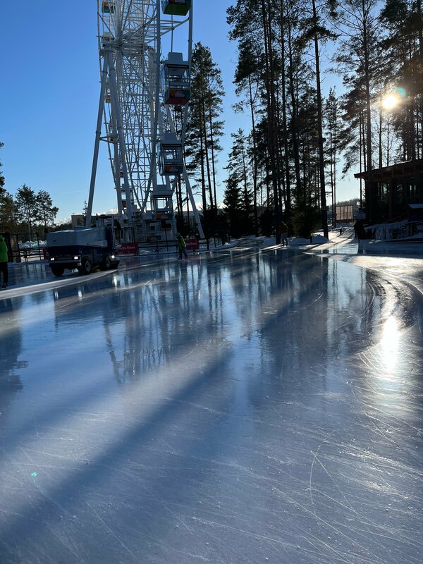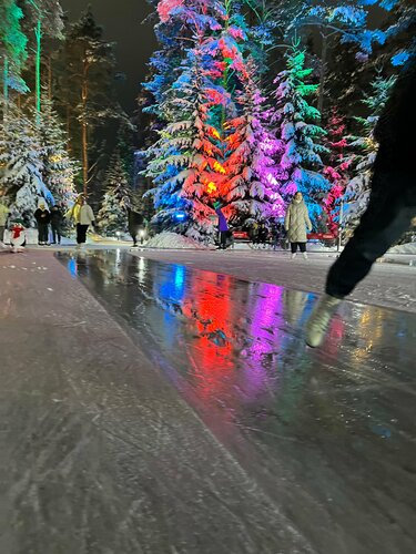 Красивое благоустроенное место для здорового отдыха недалеко от города. Удобно— можно приехать сюда с детьми сразу после школы, например— дорога не займёт много времени. Здесь можно и пообедать, и просто попить чаю с блинками прямо на катке. Я так и делала, пока дети были маленькими. Сейчас тоже часто приезжаем и с удовольствием проводим время. Каток с ледяными тропинками в лесу, в тёмное время красиво подсвечивается, а в светлое знай катайся под солнцем, любуйся высокими соснами в снегу! За качеством льда следят очень внимательно, постоянно «проглаживают» машиной. На катке много дежурных. Есть поддержка- перевозчик, фигурки такие в виде пингвинов и снеговиков, для начинающих— скользишь и держишься, чтобы не упасть. Чистый туалет, камеры хранения- платные и бесплатные. В выходные много народу, конечно, и это очень хорошо— весело! Главное, не нарушать правила движения, не катиться против течения, так сказать, но везде вдоль дорожек есть указатели направления— зелёные стрелочки, так что не ошибёшься. Приезжайте!