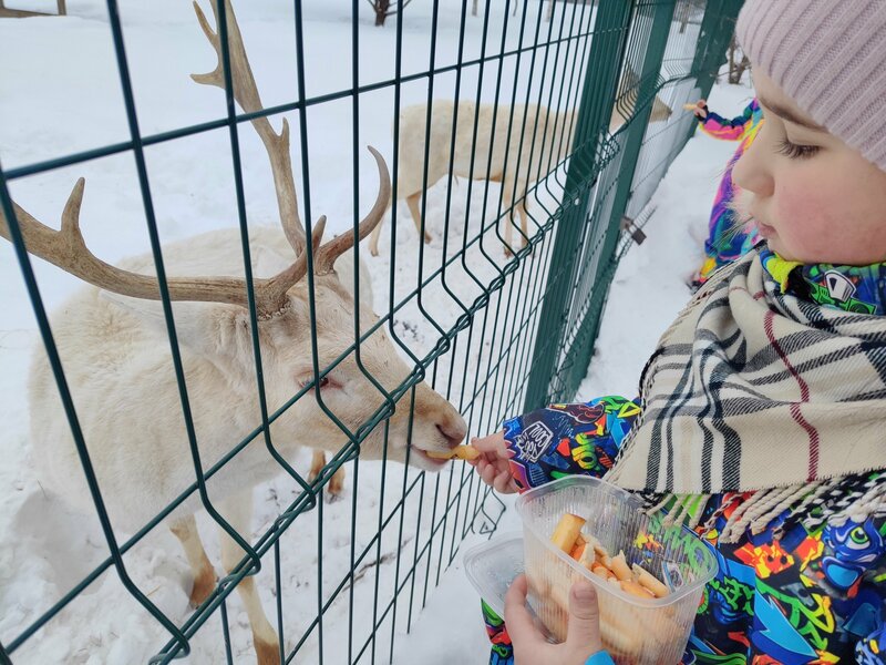 Отдыхали с внуками в феврале 26, очень понравилось. Двухкомнатный номер в основном корпусе, чтоб в ресторан не переодеваться. Большая территория, много животных в вольерах: олени, птицы, верблюды, кролики , зубры, ослики, тигрица. Катание в упряжке на хасках. Каток, большая детская комната с анимацией. Неплохой ресторан, вкусные блюда, официанты быстро убирают. Хорошие чистые номера. Рекомендую на три четыре дня.
