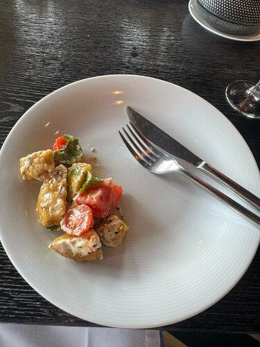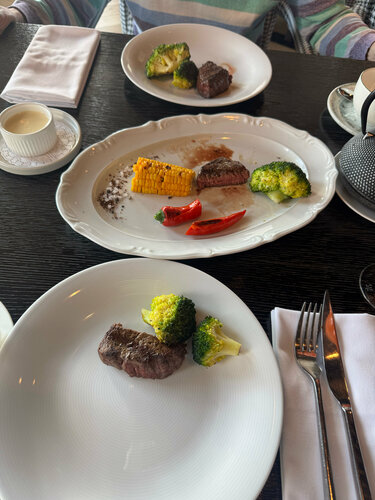 9-го марта обедали в ресторане Дом. Нас с супругом проводили на второй этаж и предложили столик с лучшим видом на море. Наш официант, Андрей, очень любезный и гостеприимный, помог нам определиться с горячим блюдом. На самом деле, Андрей выглядит как с картинки - идеально! У Андрея, при сервировке стола, на столько всё четко и быстро и в тоже время без суеты, ни одного лишнего движения. Огромное спасибо Андрею за его внимание и заботу.🌹🌹🌹 Мы заказали: салат с баклажанами, салат нисуаз, говяжью вырезку с брокколи на гриле. Все блюда выглядили ярко, красиво и возбуждали аппетит! Было действительно очень вкусно! Говяжья вырезка была очень сочная и мягкая! Спасибо повару за эстетическое и гастрономическое удовольствия от ваших блюд.🌺🌺🌺 Благодарю администрацию ресторана за замечательную работу всех сотрудников ресторана Дом!❤️❤️❤️
