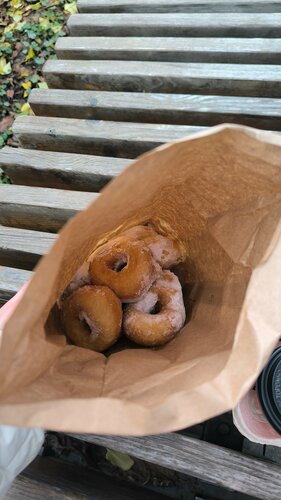 Ну что ж, пончики на ВДНХ done. Если вы любите просто пончики, не модные donuts, то определенно это место стоит посетить при наличии у вас времени на отстоять очередь, так как она тут есть всегда. Это просто обычные вкусные пончики, в обычной сахарной пудре. Стоимость пончиков 75 р за 100 гр. Горячие и холодные напитки в меню также имеются. Место просто подкупает историей, что сохранилось со времён Союза, в остальном же довольно неудобно к посещению: почти никогда не работает терминал для оплаты картами, вечная очередь, крайне мало места внутри, употреблять их приходится на улице, не скажу, что это неудобно, но немного дискомфортно. Один раз посетить можно.