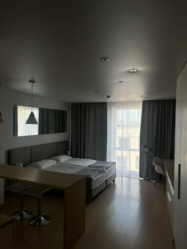 Приятное место, вкусная еда в кафе на первом этаже. Брал номер студио на одного, вопросов не возникло. Классное постельное белье, классные мыльные принадлежности, чистейший номер. Единственный момент, располагался на последнем этаже - ночью слышал воду/коммуникации, но сну это не помешало Вернусь ещё. Район также хорош! Завтраки с 9 до 9 вечера, подойдет таким же полуночникам как я