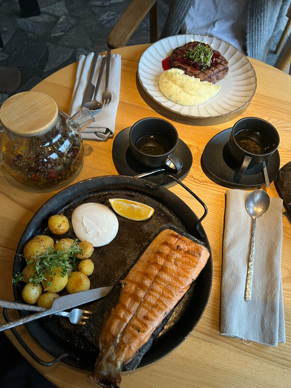 Еда богов, приятный, внимательный сервис, очень вкусные рыба и мясо! Вполне конкурент даже топовым московским ресторанам!