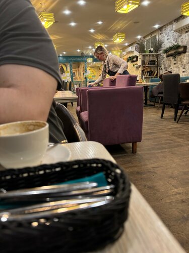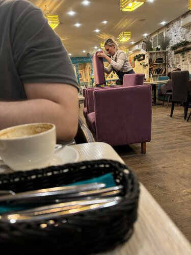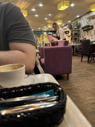 Всегда приятная атмосфера , но более приятная в зале при входе . В общем зале уже не так уютно. Несколько раз официант не внимательно записывали заказ и получалось так , что заказываешь одно, приносят другое . Например вместо брускетты с лососем принесли с мясом... по этому ставлю 4 звезды( тк было не единожды и даже не дважды). В целом заведение приятное , хоть и дороговатое . Раньше блюда были больше . Посетили данное заведение еще раз в конце апреля 24 года и я решила свой отзыв с 4 звезд снизить до трех . И то три оставляю за положительные в прошлом эмоции от посещений кафе данной сети. Что не понравилось в этот раз : 1 очень долго готовили блюда . Не вкусно . Меню сильно изменилось , порции маленькие, стоимость огромная. Но даже не это послужило толчком редактирования отзыва, а то что пока мы пытались празднично поужинать в день рождение дочери, персонал ( официанты) убирали зал . То есть мыли соседние столики . Все как положено . Тазик на столе , тряпка , перчатки . Девушка протирала подушки от кресел, сами кресла . Молодой человек - официант делал то жемое с правой стороны от нас .Выглядело это так, как будто генеральная уборка . Уж не знаю обрабатывают ли так столы и сидения после каждого клиента , или это ежедневная обработка посадочных мест . Но разве можно делать это когда гости ужинают?!