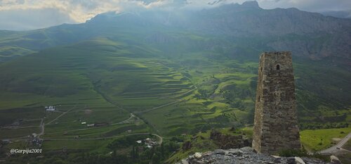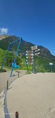 Красивые виды, как т везде в Осетии! Вспомнили детство, покатались на качельке! Дорога оставляет желать лучшего, но для полноприводной высокой машины не представляет сложности