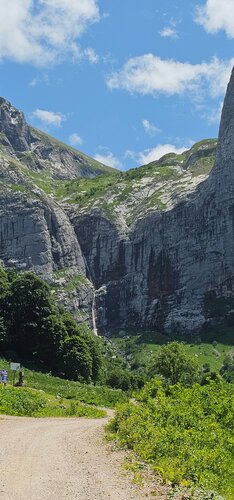 Само место очень красивое, вид на Пшеха-Су и Фишт с его задней стороны. Водопад полноводный когда обильное таяние снегов, это конец весны и начало лета, потом он превращается в тоненькую ниточку. В это же время всё вокруг цветёт, шикарная сочная зелень, но ещё не выдавали борщевивики в человеческий рост. Территория Кавказского Заповедника, стал платный вход 300 р.