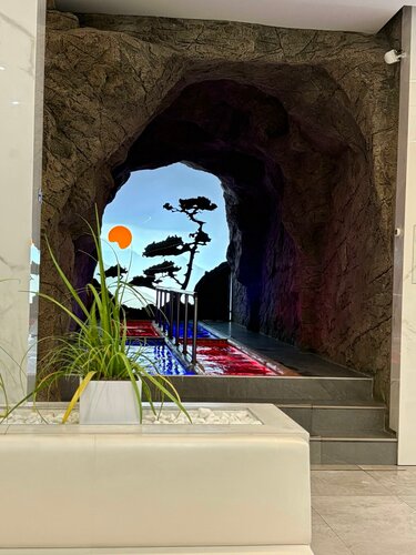 Большое количество различных бань. Понравился контрастный душ и японские купели, бассейн не глубокий и теплый. Кофе попить порядка 6 руб. за капучино. Покушать в кафе блюда от 10-30 руб. Людей умеренно, как по мне. Можно где-то уединиться.