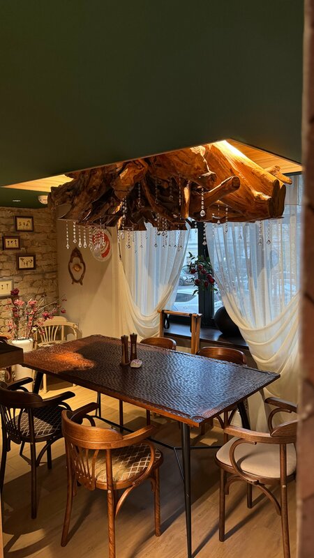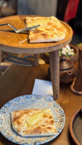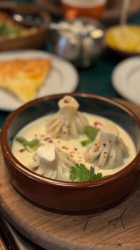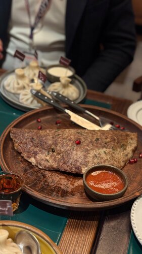 🏠 входная группа была в осеннем оформлении, очень классно, когда в ресторане хочется везде фотографироваться, фотографировать детали. В зале освещение для дорогих фото! Декор на столах, картины, интерьер в целом - это 👍🏻🌟🌟🌟🌟🌟 📕 хорошее, понятное меню, видишь фото блюд и выбираешь 🤵🏼‍♀️встречают у входа, провожают к столу, знают меню и могут рассказать о блюдах 👍🏻 🥘 заказывали чебурек из мяса, различные хинкали в соусах, мини хинкали, хачапури, чай - всё вкусно и красиво , спасибо😍 😶‍🌫️Уборная комната - весёлая 😄 там и потанцевать можно, классная музыка и селфи интересные сделать